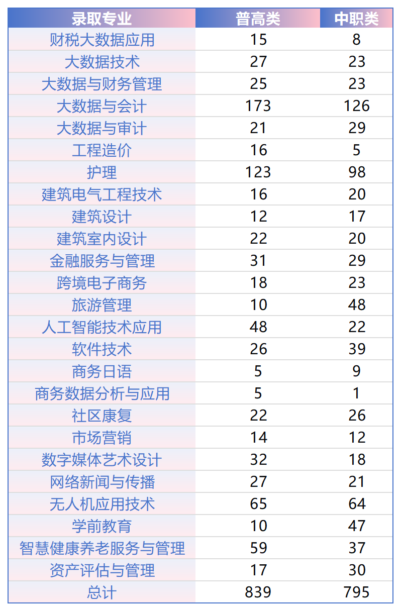 2025年西南财经大学天府学院高职单招各专业录取人数