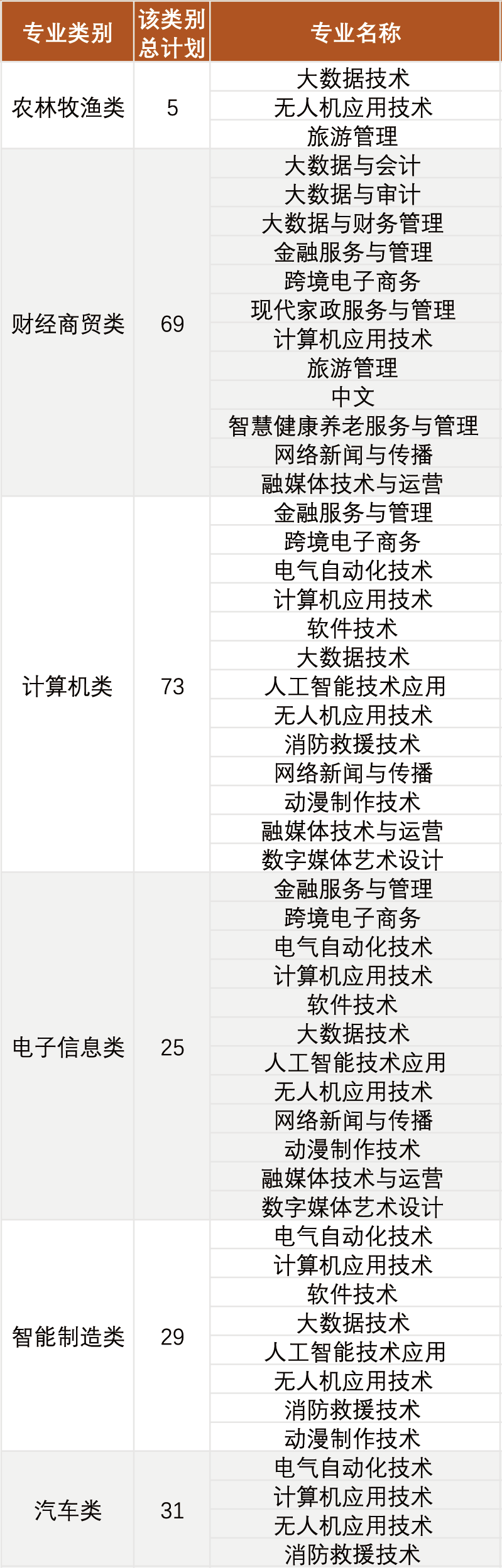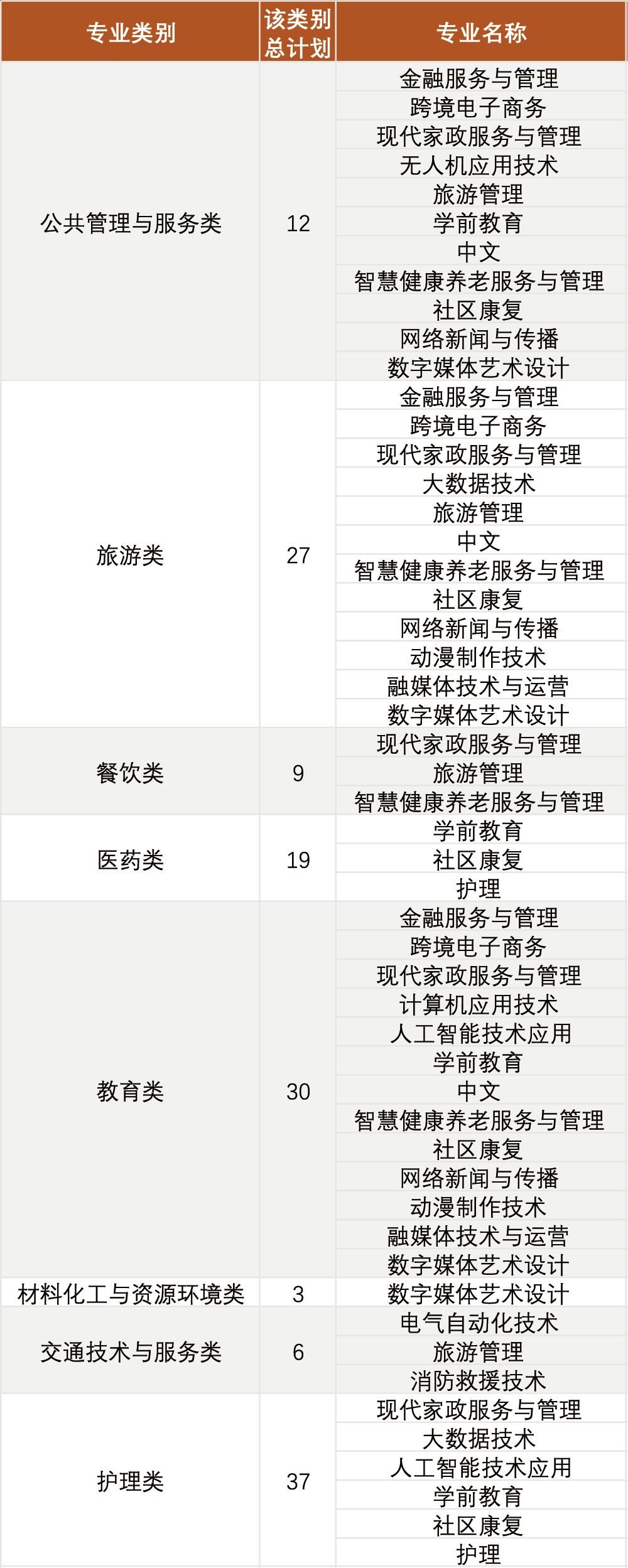 2026年中职类招生专业计划对照表
